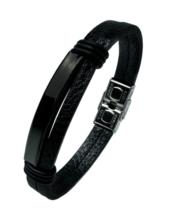 • Dwa rzemykowe paski ze strukturą skóry - to unikatowe połączenie. Gruba struktura gwarantuje lekkość i trwałość, wytrzymałość i odporność na zniszczenia. Jeden z pasków posiada ozdobną elegancką blaszkę ze stali nierdzewnej, w czarnym połysku. Dzięki temu bransoletka nie jest nudna i przyciąga uwagę.