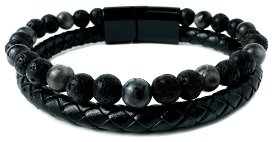 • Splot koralików ze skały wulkanicznej i turmalinu – jest to efektowne połączenie czerni i odcieni szarości. Skała wulkaniczna symbolizuje odrodzenie i potęgę natury, a turmalin chroni przed złą energią i wzmacnia odporność psychiczną.